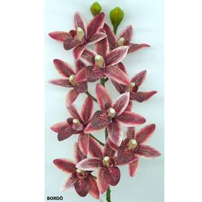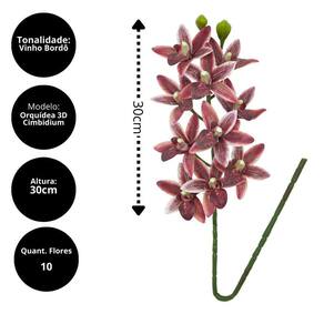 Haste de Orquídea 3D Cymbidium Silicone Premium ? Vinho Bordô 30cm com 10 Flores