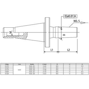 ESPECIFICAÇÕES DA HASTE PARA MANDRIL MODELO ISO40 B18 DIN 2080
