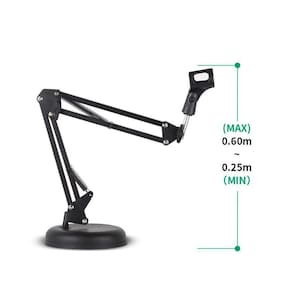 Haste flexível com base redonda- Excelente estabilidade e capacidade de carga.- Proporciona um visual limpo e profissional para a sua estação de gravação.- Não ocupa o espaço útil em excesso de uma mesa ou superfície, pode ser removido facilmente.- Tamanho da haste: 50 cm 25 cm + 25 cm .- Diâmetro da base: 15 cm- Altura da base: 3 cm- Capacidade de carga: 1,5 kg- Material: aço, plástico- Cor: preto Marca: Aj Som Acessórios Musicais