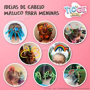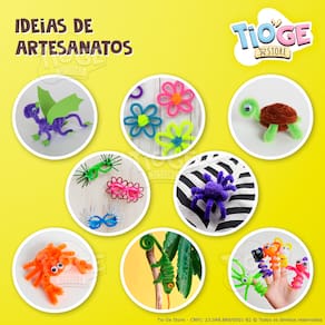 O Dia do Cabelo Maluco ou Penteado Maluco já virou tradição nas escolas e, neste dia, as crianças são encorajadas a expressar sua criatividade através de penteados malucos. Com as Hastes Flexíveis de Pelúcia essa atividade ficará ainda mais fácil e divertida, pois flexibilidade das hastes permite que crie uma infinidade de formas, objetos, animais e personagens. Também podem ser utilizadas como auxiliar na alfabetização, pois é possível criar letras e números com facilidade, tornando o aprendizado mais lúdico. Elas podem ser cortadas com tesoura comum e coladas com cola escolar. O pacote é composto por 10 peças com aproximadamente 30cm de comprimento e 6mm de espessura. São enviadas 10 unidades na Cor Azul Escuro.