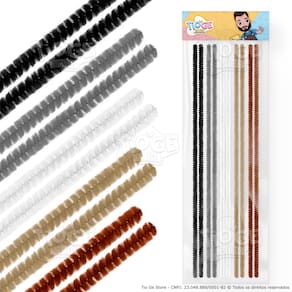 - 1 Pacote com 10 Hastes Flexíveis de Pelúcia de 30cm cada nas cores Preto, Cinza, Branco, Bege e Marrom (2 und de cada).
