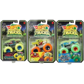 Monster Trucks Glow in the Dark Hot WheelsMarca do produto: Hot Wheels - Mattel.Escala: 1/64 (comprimento 9 cm; largura 6,3 cm; altura 5,5 cm)Carcaçaem Metal e Partes de Plástico. Pneus de Borracha.A ação fica mais emocionante quando as luzes se apagam com os Hot Wheels Monster Trucks que brilham no escuro!Apague as luzes para brilhar no escuro, bater e se divertir com os veículos Hot Wheels Monster Trucks Glow in the Dark.O caminhão de brinquedo favorito dos fãs tem um recurso que brilha no escuro para adicionar à aparência e ao fator de jogo fora das paradas.neus gigantes e designs ferozes permitem que as crianças criem batalhas épicas com muita ação. Os fãs e colecionadores de Monster Trucks vão querer todos eles!