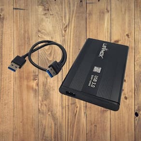 HD externo de 500GB com case de alumínio, conexão USB 3.0, sistema Plug & Play.Capacidade