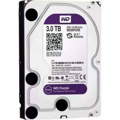 Hd Purple 3tb Sata 6 Gb/S 5400rpm 64mb Wd30purz Modelo: WD30PURZ Informações do produto: Os HDs WD Purple foram desenvolvidos especialmente para uso em equipamentos de segurança eletrônica. Mais robustos, seguros e confiáveis, possuem a de qualidade. Sua tecnologia exclusiva é compatível com as principais marcas de CFTV. Características: - Disco rígido especial para segurança eletrônica; - Operação 24 horas por dia 7 dias por semana; - Estabilidade na gravação de dados; - Velocidade de disco controlada; - Dissipação de calor otimizada; - Baixo consumo de energia e nível de ruído; - Compatível com as principais marcas de CFTV; - 3 anos de . Especificações: - Capacidade formatada: 1 TB; - Fator de forma: 3,5 polegadas; - Formatação avançada: Sim; - Em conformidade com RoHS2: Sim. Desempenho: - Velocidade de transferência dos dados máx. ; - Buffer para sistema anfitrião: 6Gb/s; - Anfitrião de/para unidade sustentada : 145 MB/s; - Cache MB : 64; - Velocidade de rotação RPM : IntelliPower; - Fiabilidade/Integridade dos dados; - Ciclos de carga/descarga: 300.000; - limitada anos : 3; - Gestão de energia; - Média de requisitos de energia W ; - Leitura/escrita: 4,4; - Inactividade: 4,1; - Suspensão e pausa: 0,4. Especificações ambientais: - Temperatura C ; - Em funcionamento: 0 a 65; - Não em funcionamento: -40 a 70; - Choque Gs ; - Em funcionamento 2 ms, leitura/escrita : 30; - Em funcionamento 2 ms, leitura : 65; - Não em funcionamento 2 ms : 350; - Acústica dBA ; - Inactividade: 23; - Procura média : 24. Dimensões físicas: - Peso: 0,64 Kg; - Largura: 11 cm; - Altura: 3 cm; - Profundidade: 15 cm. Mais informações: Encontre aqui na Rotashop a maior variedade em Informática HD. Homologação Anatel: 060792000160