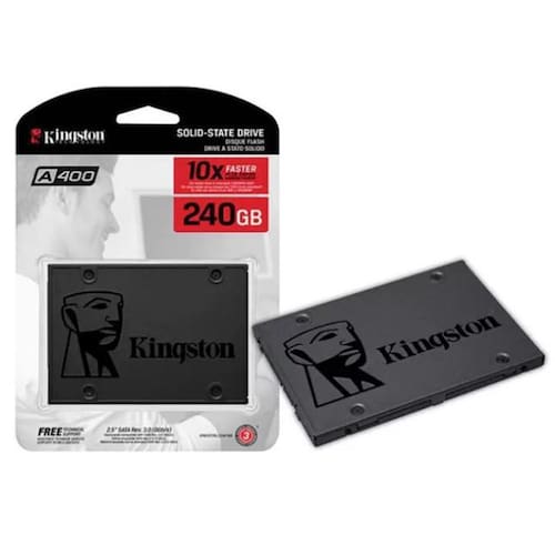Características Marca: kingston Modelo: sa400s37/240g Tamanho: 2.5 polegadas Capacidade: 240gb Interface: sata rev. 3.0 6gb/s Compatibilidade: versão anterior sata rev. 2.0 Leitura máximo: 500m/bs Gravação máximo: 350mb/s Velocidade: 10x mais rápido do que um disco rígido de 7200rpm Garantia: 03 meses contra defeitos de fabricação