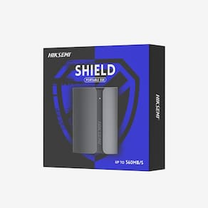 HD SSD Externo Hiksemi Shield T300S com capacidade de 1TB, interface USB 3.2 Tipo-C, velocidade de leitura de até 560MB/s, design compacto em alumínio, resistente a choques e compatível com múltiplos dispositivos.Capacidade