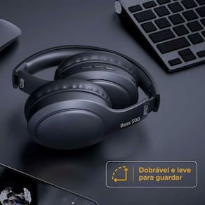 Headphone Bluetooth BASS 500 i2GO com Microfone Integrado, Controle Multimídia, Até 30h de bateria, Entrada cabo auxiliar P2 (Incluso), Dobrável, Conexão Multiponto i2GO PRO