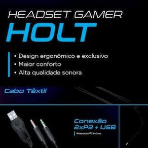 O HEADSET GAMER FORTREK HOLT 70552 combina potência sonora, design robusto e estilo gamer com iluminação LED RGB Rainbow. Equipado com drivers de 50mm, oferece áudio estéreo imersivo, graves intensos e excelente clareza de som para jogos, músicas e comunicação. O microfone omnidirecional com cancelamento de ruído garante voz nítida em partidas online. Com conectividade versátil através de 2x P2, USB e adaptador P3, além de cabo têxtil trançado de aproximadamente 1,9 Metros o Fortrek Holt entrega conforto, resistência e desempenho para longas sessões de gameplay.