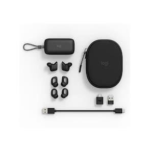 Dados Técnicos: Conectividade Tipos de conexões: Bluetooth, receptor USB-A com adaptador USB-C Alcance sem fio: Até 30 metros (campo aberto) Dispositivos emparelhados: Duas conexões ativas e até seis conexões armazenadas Bateria Tempo de fala/áudio Tempo de fala: Até 5h (ANC ligado); até 6h (ANC desligado) Tempo de escuta: Até 6h (ANC ligado); até 10h (ANC desligado) Carregamento - 2h30 para carregamento completo dos fones de ouvido - 2h30 para carregamento completo do estojo - 5 min de carregamento rápido = até 1h de tempo de escuta - Carregamento Qi Wireless2 ou cabo de carregamento USB-C para USB-A (incluído) Áudio Tipo de microfone: Matriz de microfones duplos MEMS omnidirecional com formação de feixe e um microfone interno ANC (cancelamento de ruído ativo): Alterne facilmente entre o ANC híbrido e o modo de Transparência para eliminar os ruídos de fundo do ambiente ou ouvir as pessoas, tráfego e outros sons externos Qualidade de som: Os drivers grandes de 12 mm oferecem graves completos, e o tecido ajuda a reduzir os ruídos de vento Proteção acústica: Certificação EN 50332 Fácil de usar Controle: Atender/encerrar/recusar chamadas, pausar/reproduzir músicas, anterior/próxima música, ligar/desligar ANC/modo de Transparência, Áudio ativado/desativado, aumentar/diminuir volume, iniciar o Microsoft Teams Alertas de áudio Alertas de voz para a duração da bateria, modo sem áudio, ANC/modo de Transparência, status de energia e conexão Conforto para o dia inteiro: Três tamanhos de pontas de gel (P, M e G) estão disponíveis para um ajuste personalizado Fácil de gerenciar: Monitore e gerencie seus dispositivos pessoais de colaboração em uma única plataforma com o Logitech Sync. Oferece suporte para implantações em toda a empresa em escala e simplifica tarefas como atualizações de firmware e recursos.