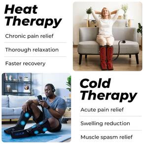 Este massageador apresenta uma terapia a frio em cima das funções de compressão e calor da perna. A máquina massageadora de pés vem com 8 almofadas de gel que você precisa pré resfriar no freezer e depois colocar em bolsos especiais dentro do dispositivo de massagem nas pernas, e desfrute do alívio da dor aguda. Você pode usar a opção de resfriamento sozinha ou combiná la com a compressão da panturrilha para obter um efeito mais abrangente, mas não é recomendável ligar o calor durante as sessões de resfriamento.
