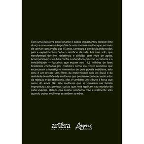 Com uma narrativa emocionante e dados impactantes, Helena: feita de aço e amor revela a trajetória de uma menina-mulher que, ao invés de sonhar com a valsa aos 15 anos, carregou a dor do abandono dos pais e experimentou cedo o sacrifício da vida. Foi mãe solo, que transformou dor em resistência e solidão, sem rede de apoio. Acompanhamos sua luta contra o abandono paterno, a pobreza e a invisibilidade — batalhas que ecoam nos 11,6 milhões de lares brasileiros chefiados por mulheres como ela. Entre números que escancaram a injustiça e momentos de pura poesia cotidiana, esta obra é um retrato sem filtros da maternidade solo no Brasil e da realidade de milhões de mulheres que precisam conhecer cedo a dor da rejeição e do abandono. Mas é também um tributo à força que nasce do amor. Das sete mulheres que se tornaram sua família improvisada aos projetos sociais que hoje replicam seu modelo de sobrevivência, Helena nos ensina: nenhuma mãe é realmente solo quando outras mulheres estendem as mãos.