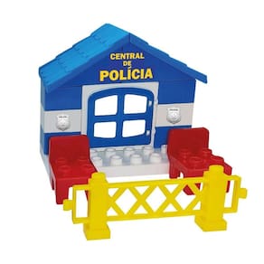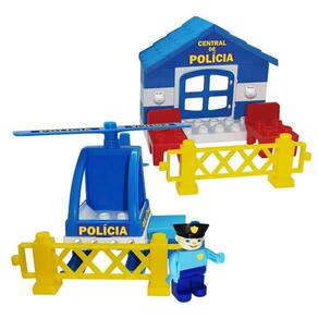 Playset completo com cenário de delegacia, helicóptero e policial, proporcionando uma experiência imersiva e cheia de aventuras.