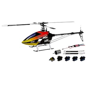 Especificações Técnicas: Modelo: Align T-REX 250 PRO DFC COMBO Tipo: Helicóptero elétrico compacto para voo intermediário/avançado Rotação Flybarless: Sistema DFC avançado para controle direto Motor: Brushless de 3600Kv com alto desempenho Lâminas: Fibras de carbono com aerodinâmica otimizada Chassi: Construção em alumínio e fibra de carbono para leveza e resistência Fonte de Energia: Compatível com baterias de LiPo 3S (11.1V – não incluídas) Eletrônicos: ESC: 15A (regulador de velocidade integrado ao kit) Servos: Digitais de alta precisão (cyclic e tail control) Giroscópio integrado para estabilidade durante o voo Dimensões: Comprimento: 455 mm Altura: 128 mm Diâmetro do Rotor Principal: 460 mm Peso: Aprox. 350 g (sem bateria)