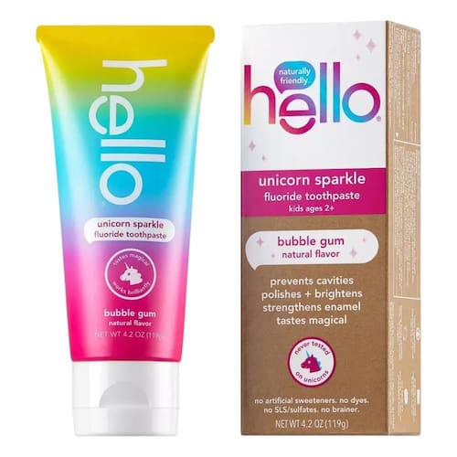 A pasta de unicórnio não contém glúten, nem hortelã, nem SLS / sulfato, nem adoçantes / sabores artificiais, corantes, microesferas, parabenos e triclosan.