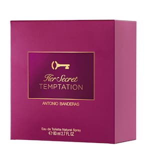 Her Secret Temptation, de Banderas, é um perfume feminino que transmite a elegância refinada de paixões arrebatadoras em notas que combinam o máximo de feminilidade e mistério. O ar cítrico e luminoso do Néroli capta o interesse assim como os passos da mulher que usa a essência. As Pétalas de Rosas da Bulgária recebem o amadeirado do Cedro, dupla que forma uma composição intensamente sofisticada.