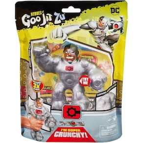 PRODUTO INTERNACIONAL. Procure pela mais nova figura de ação da Cyborg da linha Heróis de Goo Jit Zu! Agora, ele se tornou um Super Crunchy Hero, pronto para usar suas super-forças e seus poderes cibernéticos para lutar pelo que é certo. Com seu corpo cheio de gosma, você pode apertá-lo, esticá-lo e esmagá-lo sem se preocupar com bagunça