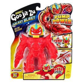 Prepare-se para decolar enquanto as aventuras de "Out of this World" continuam com os Heróis de Goo Jit Zu Galaxy Blast Series! The Heroes Of Goo Jit Zu Galaxy Blast - Pump Power Action Figures estão de volta! É uma nova maneira de jogar! Conheça Air Vac Blazagon. Este herói popular de Goo Jit Zu está de volta maior e melhor do que nunca! Agora ele usa um terno vermelho vermelho para poder lutar como nunca antes! Prepare-o para um ataque vac. Bombeie a cabeça de Blazagon para cima e para baixo para remover o ar de seu corpo para formar um vácuo em seu Goo. Em seguida, estique os membros e dobre os braços e pernas. Uau! Ele pode segurar sua pose elástica! Para liberar o vácuo basta segurar a cabeça de Blazagon enquanto pressiona o botão de liberação em seu capacete para que você possa devolvê-lo de volta ao seu estado crocante. Heróis de Goo Jit Zu Galaxy Blast são uma maneira gooey para as crianças brincarem com Action Figures que não fazem bagunça. Aperte, estique, estique e colete ambos Pump Power Action Figures - Air Vac Steel Thrash e Air Vac Blazagon e assista-os lutar contra os super vilões como nunca antes. É hora de um Ataque Vac para ver quem governará a Galáxia Gooey!