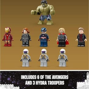 Heróis Marvel Vingadores Unidos: Era de Ultron Lego 76291 Conjunto dos Vingadores - Este brinquedo de Super-herói para construir recria a batalha épica de Vingadores: Era de Ultron da Marvel Studios com uma série de minifiguras LEGO Marvel e recursos autênticos Personagens colecionáveis dos Vingadores LEGO Marvel - Este brinquedo para construir inclui a Viúva Negra, o Capitão América, o Homem de Ferro, o Thor e 3 minifiguras de Soldados da Hidra, além de uma figura maior do Hulk Muitas maneiras de brincar - O conjunto é composto por 5 módulos, que podem ser configurados para infinitas possibilidades de brincadeiras ou combinados para criar uma exposição de Super-herói cativante Conjunto LEGO de aventuras para construir - Este modelo LEGO Marvel autenticamente detalhado inclui um veículo off-road montável, , acessórios e recursos divertidos para inspirar brincadeiras imaginativas Um presente dos Vingadores da Marvel para crianças - Presenteie fãs de Hulk, Thor, Viúva Negra, Capitão América e Gavião Arqueiro com este conjunto LEGO divertido repleto de minifiguras Marca: Não Informado