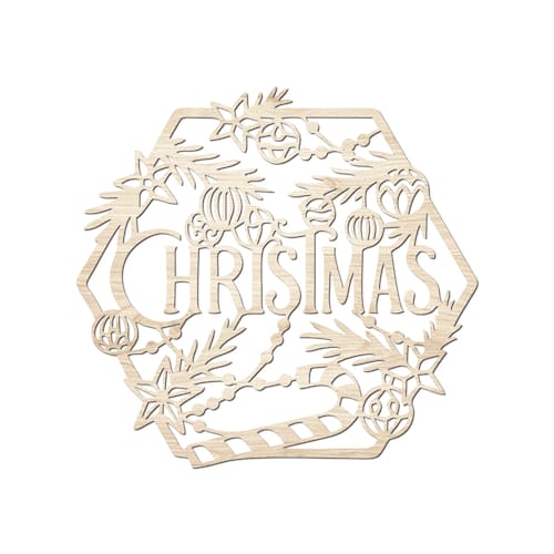 Hexágono De Natal 32cmx30cm - Cria Arte Laser madeira clara -