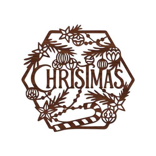 Hexágono De Natal 32cmx30cm - Cria Arte Laser madeira escuro -