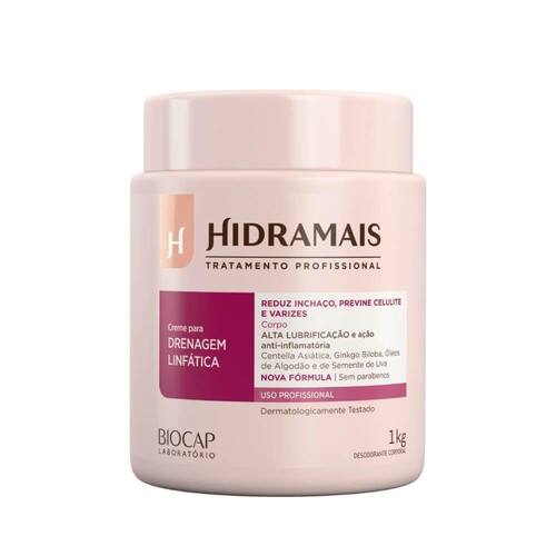 Hidramais Drenagem Linfática Creme P/ Massagem 1kg DESCRIÇÃO: Possui agentes antioxidantes que ativam a microcirculação, prevenindo os aparecimentos de estrias e varizes. Com o auxílio de massagem específica, mobiliza a linfa até os gânglios linfáticos, eliminando o excesso de líquido e toxinas. Pode ser aplicado manualmente ou com o auxílio de aparelhos estéticosAÇÃO/ATIVOS: Auxiliar na redução de medidas. Pós-operatório, para evitar retenção de líquidos. Melhorar a circulação. Reduzir toxinas e líquidos corpóreos. Atenuar celulite. Tonificação e elasticidade Ativos: Centella Asiática: A sua fração triterpena normaliza a produção do colágeno. Sua ação sobre os edemas de origem venosa permitem o tratamento da celulite localizada. Ginkgo Biloba: Potente antioxidante. Inibe a destruição do colágeno. Tem ação protetora contra os radicais livresMODO DE USAR: Aplique o produto na pele e massageie até a sua completa absorção. Manipulação: Use sempre uma espátula descartável para retirar o produto da embalagem, reduzindo o risco de contaminação. O uso de luvas é indispensável durante a aplicação do produto.ESTE ANÚNCIO CONTÉM: 01 Hidramais Drenagem Linfática Creme P/ massagem 1kgHidramais Drenagem LinfÃtica Creme P/ Massagem 1kg