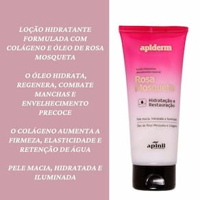 Loção Hidratante Corporal Rosa Mosqueta Apiderm 190g - Fórmula rica em nutrientes que nutre, hidrata e devolve a maciez à pele, deixando-a radiante e sedosa.