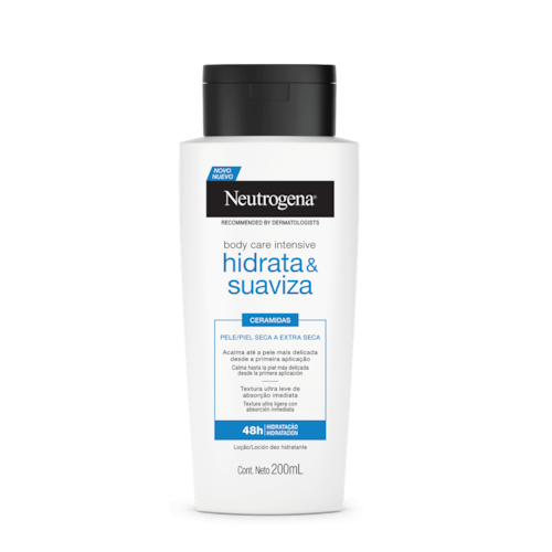 Neutrogena Body Care Hidrata & Suaviza acalma até a pele mais delicada desde a primeira aplicação. Combina ativos poderosos, textura ultraleve não oleosa e hidratação de alta fixação por 48 horas ideal para peles secas e extra secas e adequada até para as peles mais delicadas. Sua fórmula avançada foi desenvolvida com alta concentração de Ceramidas, componente natural da pele que protege de agressões externas e oferece mais ciência para sua pele.