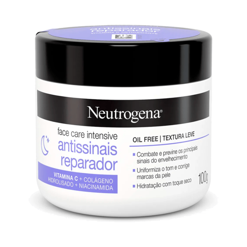 O Hidratante Face Care Intensive Antissinais Dia FPS 22 tem ação eficaz contra os três principais fatores de envelhecimento da pele: combate e previne linhas finas, além de uniformizar o tom e ajudar a firmar a pele.Além disso, proporciona hidratação intensa com proteção solar contra raios UVA e UVB combinado à sua textura leve, oil free e de fácil absorção, deixando toque seco na pele. Combina 3 ingredientes dermatologicamente comprovados em um só produto: vitamina C antioxidante, colágeno, niacinamida. Fórmula avançada que oferece alta tecnologia científica para sua pele!ESPECIFICAÇÕES:Marca: NeutrogenaLinha: Face Care IntensiveModelo: Hidratante AntissinaisVolume: 100gFator de Proteção Solar: 22Indicado: Para todos os tipos de peleDermatologicamente testadoBENEFÍCIOS:Textura leve - Oil freeFórmula com vitamina C e ColágenoRedução das linhas de expressãoUniformização do tomMelhora da firmezaFácil absorçãoProteção solar contra raios UVA e UVBCOMO USAR:Aplicar com movimentos suaves sobre o rosto e pescoço previamente limpos.ATENÇÃO:* Apenas para uso externo. Não ingerir.* Mantenha fora do alcance das crianças.* Conservar em local fresco, seco e ao abrigo da luz solar direta.* Se ocorrer irritação ou desconforto, descontinue o uso e consulte um médico. Ean: 7891010253806