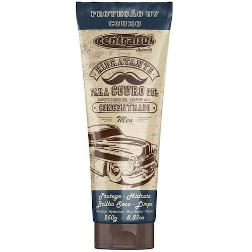 DETALHES DO Hidratante para couro men gel 250g centralsul: Este produto foi desenvolvido para devolver o aspecto original do couro. Em uma única aplicação remove toda a sujeira acumulada, hidrata e protege contra raios UV, aumentando a vida útil do couro. Pode ser utilizado em bancos de couro de todas as cores, jaquetas, sapatos, bolsas ou qualquer material de couro ou sintético. Não recomendável o uso deste produto em peças rasgadas ou quebradas.