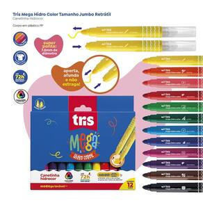 MEGA divertido! MEGA colorido! A linha de colorir MEGA da TRIS é uma alternativa de qualidade para potencializar a criatividade dos seus usuários. Ponta tamanho SUPER jumbo e retrátil: aperta, afunda e não estraga. Fica até 72h destampada sem secar e tem tinta super lavável. As canetinhas hidrocores possuem super ponta de 7.8mm, o nome das cores e código ColorADD no corpo. A ColorADD é uma linguagem universal que ajuda daltônicos a identificar cores. Com símbolos representando cada cor, a paleta se torna acessível aos daltônicos, trazendo mais cor à vida das pessoas. Conjunto com 12 cores incríveis.