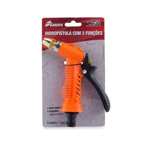 | Informações Gerais e Recomendações | A hidropistola é utilizada em mangueiras com engate rápido de 1/2", 3/4" ou 5/8"Possui sistema de bloqueio da água Possui 2 regulagens diferentes do jato Dispensa o uso de ferramentas na montagem |