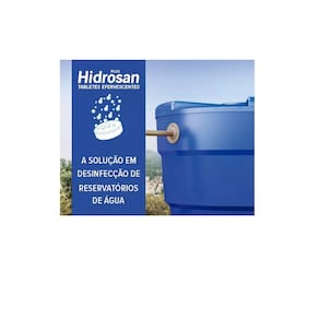 Hidrosan Plus Efervescente Cartela Com 6 Tabletes 5 gHidrosan efervescente é um tablete para a desinfecção, além de realizar a higienização de frutas e verduras, Hidrosan Efervescente proporciona a desinfecção com eficiência de utensílios e ambientes como cozinhas, restaurantes, lactários e caixas d’água e reservatórios. Modo de Usar:Para desinfecção de hortifrutícolas dissolva 1 tablete de 5 gramas em um recipiente contendo aproximadamente 15 litros de água, mergulhe as frutas, verduras e legumes de forma que fiquem completamente imersos e aguarde 20 minutos antes de consumir. Não é necessário enxaguar, apenas escorra o excesso ou seque com um pano limpo e está pronto para consumo.Para desinfecção de água para consumo humano, dissolva 1 tablete de 5 gramas em um recipiente contendo aproximadamente 600 litros de água.Aguarde 20 minutos antes de consumir.Em caso de água suja, retirar toda a sujeira antes da dosagem de hidrosan.Ingrediente ativo: Dicloroisocianurato de sódio 51%; Aditivos 49%; Teor de cloro ativo 30%.Contém: 06 Unidades de 5 g cada
