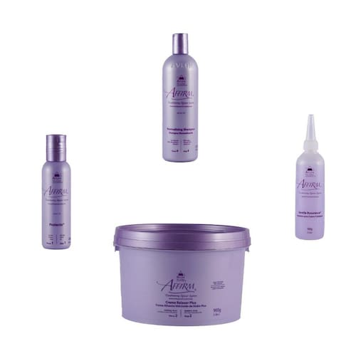 Este kit contém 1 alisante hidróxido de sódio normal plus 900g avlon affirm 1 normalizing shampoo 475ml avlon affirm - pós química 1 protetor de couro cabeludo avlon gentle assurance 100ml - pré química 1 protetor de fios avlon protecto 120ml - pré química Somos a butique da beleza Uma empresa especializada no comércio de cosméticos e semijoias. Estamos sempre entre os melhores vendedores. Nosso compromisso é com você Seu conforto e segurança são nossos propósitos Servir e ajudar são nossos deveres Hidróxido de sódio avlon affirm Reconhecido mundialmente, a avlon affirm é o sistema de alisamento e relaxamento mais avançado, o hidróxido de sódio affirm oferece resultados incomparáveis para cabelos cacheados e crespos tipos 3 e 4 . Desenvolvido com a expertise líder em cuidados capilares, sua fórmula combina alta tecnologia com ativos nutritivos como óleo de argan e macadâmia, garantindo alisamento duradouro e preservação de até 81% da elasticidade natural dos fios, um feito exclusivo no mercado de relaxamento capilar. Portanto, se você busca um relaxamento e, ou alisamento eficaz para cabelos cacheados e crespos tipos 3 e 4 ,a linha avlon affirm é a solução perfeita. Shampoo normalizante avlon affirm Se seus cabelos estão fragilizados após procedimentos químicos, o shampoo normalizante avlon affirm é o cuidado essencial para restaurar o equilíbrio natural dos fios. Desenvolvido com ph entre 5.0-7.0, ele remove resíduos alcalinos e minerais, neutralizando químicas agressivas enquanto fortalece e hidrata profundamente. Sua fórmula avançada, com exclusivo indicador de resíduos, faz com que a espuma do shampoo se torne rosa, indicando resquícios de química presentes nos fios, e branca, quando toda a química residual já foi retirada. Avlon affirm normalizing shampoo promove cabelos mais resistentes e saudáveis após processos químicos de relaxamentos e alisamentos. Affirm gentle assurance - protetor de couro cabeludo Se você busca proteger o couro cabeludo durante processos químicos como relaxamento e alisamento, o affirm gentle assurance é a solução indispensável. Desenvolvido pela marca líder em tratamentos capilares, ele cria uma barreira protetora eficaz contra irritações, queimaduras e desconfortos causados por produtos químicos agressivos, garantindo uma aplicação segura e confortável. Protetor de fios avlon affirm protecto - tratamento pré química Se você deseja proteger e fortalecer seus cabelos durante processos químicos como relaxamento e alisamento, o avlon affirm protecto é o tratamento indispensável. Sua fórmula avançada forma uma camada protetora ao redor dos fios, prevenindo danos e quebras enquanto mantém a hidratação e elasticidade natural do cabelo. Ideal para preparar e proteger os fios antes de qualquer processo químico. Marca: Não Informado