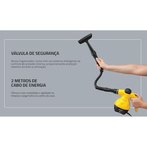 O Higienizador a Vapor Mondial proporciona um ambiente mais puro e livre de sujeiras para sua família. Possui reservatório de 350ml, sendo a maior capacidade da categoria, prolongando a duração da limpeza. O cabo de energia tem 2 metros de comprimento, alcançando lugares mais altos e oferecendo maior mobilidade. Pode ser em carros, paredes, sofás, vidros e muitos outros lugares. POTÊNCIA: Possui 1000W de potência para uma limpeza potente e rápida. RESERVATÓRIO DE ÁGUA: 350ML: O HG-01 possui a maior capacidade da categoria, prolongando a duração da limpeza. VERSÁTIL: Pode ser em carros, paredes, sofás, vidros e muitos outros lugares. VÁLVULA DE SEGURANÇA: Controla a pressão interna do higienizador, proporcionando ainda mais proteção na utilização do produto. CABO DE ENERGIA: 2 METROS: Garante mais mobilidade e agilidade na limpeza, alcançando os cantos da casa. BOTÃO DE ACIONAMENTO: Praticidade na limpeza em um único toque. - Itens inclusos 01 Tubo flexível 01 Tubo reto 01 Bocal difusor 01 Mini-Rodo para vidro e superfícies lisas 01 Escova redonda 01 Bico curvo para cantos 01 Copo medidor 01 Funil de abastecimento Luva de tecido para limpeza de estofados e roupas - Especificações Voltagem: 127V Cor: amarelo e preto Tipo: higienizador a vapor Potência: 1000W Capacidade do reservatório: 350ml Comprimento do cabo: 2 metros Luz piloto: sim Ação do produto: higienizar carros, paredes, sofás e vidros Material do corpo: PP Alimentação: energia elétrica Dimensões: 20cm x 27cm x 13,3cm AxLxP Marca: Não Informado Ean: 7898490163595