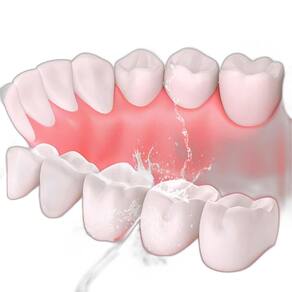 Realiza limpeza profunda limpeza profunda e sem dor entre os dentes e abaixo da linha da gengiva por meio de jatos contínuos ou pulsativos de água, removendo resíduos de alimentos e bactérias de áreas em que a escovação e o fio dental tradicional não alcançam.
