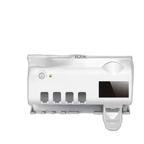 Características: Elimina até 95% das bactérias Suporte dispenser automático de pasta de dente Sistema de esterilização uv Placa de carregamento solar Sensor infravermelho inteligente Acomoda até 4 escovas de dente