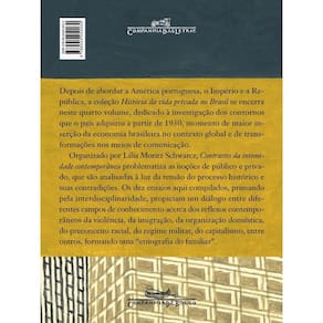 O último volume da coleção História da Vida Privada no Brasil debruça-se sobre os contrastes e limites do público e do privado em nosso país a partir dos anos 1930. Após passar pela América portuguesa, pelo Império e pela República, a coleção História da Vida Privada no Brasil encerra-se neste quarto volume, dedicado à investigação dos contornos que o país adquiriu a partir de 1930, momento de maior inserção da economia brasileira no contexto global e das transformações nos meios de comunicação. Organizado por Lilia Moritz Schwarcz, este livro problematiza as noções de público e privado, que são analisadas à luz da tensão do processo histórico e seus contrastes. Os doze ensaios aqui compilados, primando pela interdisciplinaridade, propiciam um diálogo entre diferentes campos de conhecimento acerca dos reflexos contemporâneos da violência, imigração, organização familiar, preconceito racial, regime militar, capitalismo, entre outros, formando uma “etnografia do familiar”.