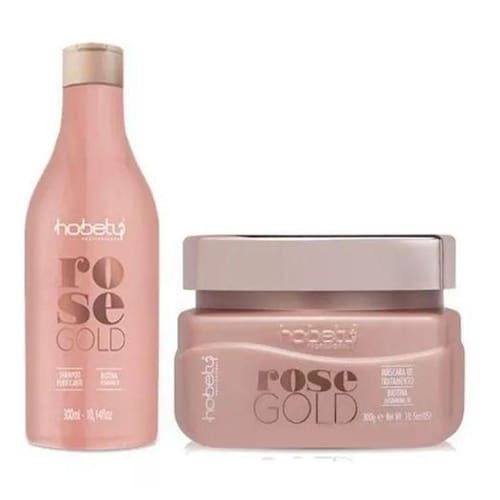 Hobety Kit Rose Gold Shampoo e Mascara Tratamento para os cabelos fragilizados e quebradiços que precisam de crescimento e fortalecimento. Auxilia a saúde e a hidratação do couro cabeludo, estimulando a produção da queratina, para os fios já existentes, deixando-os macios, brilhantes e saudáveis. Modo de Usar : Com os cabelos umidecidos ,aplique o shampoo rose Gold massageando os fios em movimentos circulares deixe agir por 5 minutos , enxague de forma abundante . Após o processo de lavagem aplique a máscara rose gold nos cabelos úmidos deixe agir por alguns minutos e enxaguar.