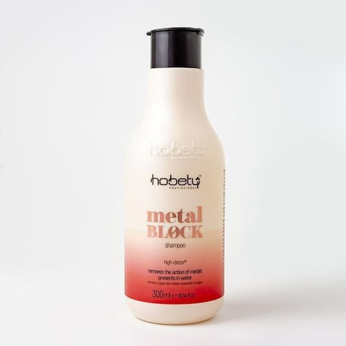 Hobety Metal Block Shampoo 300ml Shampoo Metal Block 300ml: Elaborado com a alta tecnologia high-detox, auxilia a remoção dos metais pesados nos fios através dos bioativos direcionados. Os metais pesados são prejudiciais à saúde capilar e diminuí-los dificulta a formação de radicais livres, proporcionando cabelos saudáveis, maleáveis e resistentes. Utilizados em pré- coloração, pré-mechas, pré-matização e pós-descoloração.