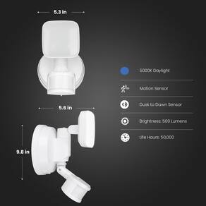 - OPERAÇÃO DO CREPÚSCULO AO AMANHECER - O sensor embutido do crepúsculo ao amanhecer garante que a luz acenda automaticamente ao entardecer e apague ao amanhecer, fornecendo segurança contínua sem qualquer intervenção manual. Esse recurso é particularmente útil para manter um ambiente bem iluminado ao redor de sua propriedade durante a noite, ajudando a manter sua família e sua propriedade seguras.
