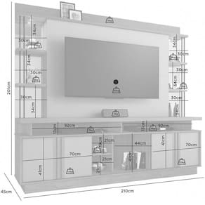 - Espaço para TV: Sim, recomenda-se TV até 65 1500 (L) x 1080 (A) mm;