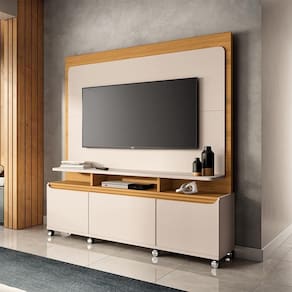 Renove sua sala com o Home Theater Mania para TV de até 70 polegadas, um móvel sofisticado que une design moderno, praticidade e alta durabilidade, sendo ideal para quem busca elegância e funcionalidade em um único produto. Produzido em MDF e MDP de 25mm e 15mm, oferece resistência e qualidade, garantindo um móvel robusto e durável. Seu tampo reforçado de 25mm proporciona segurança e estabilidade para acomodar sua TV e eletrônicos com total confiança. O design sofisticado é um grande diferencial do home theater Mania. Com um acabamento premium, as peças na cor Off White possuem impressão UV Alto Brilho, agregando um toque refinado e contemporâneo ao ambiente, enquanto as demais peças contam com impressão UV Texturizada, destacando a beleza e a textura da madeira natural, proporcionando um ar aconchegante e sofisticado ao espaço.