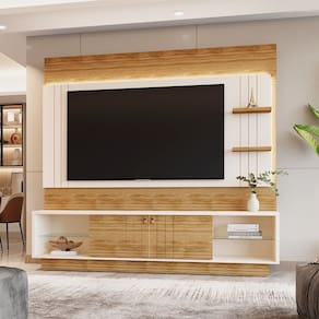 Características: Estrutura em MDP Pintura UV 02 Portas de correr em MDF frisada 02 Prateleiras de vidro Painel frisado Puxador em couro sintético Acompanha fita de LED Possui prateleiras com amplo espaço Ideal para TVs de até 65 polegadas Suporta até 45kg