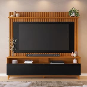 Home Nt 1340 Freijo Com Preto - Notavel O Home NT 1340 é a escolha ideal para quem deseja unir estilo contemporâneo e praticidade na organização da sala de estar. Com design robusto e acabamento sofisticado, o móvel acomoda TVs de até 60 polegadas, sendo perfeito para criar um ambiente acolhedor e elegante para momentos em famí estrutura bem dimensionada conta com tampo e base reforçados, nichos abertos para eletrônicos, prateleiras decorativas e uma porta basculante que oferece espaço extra para organizar objetos, mantendo o visual sempre limpo. O detalhe ripado na parte frontal adiciona um toque moderno e valoriza a estética do pintura em acabamento UV confere maior durabilidade e realce às cores, enquanto os pés em madeira maciça garantem firmeza, estabilidade e charme retrô ao ões:Altura: 188,5cmLargura: 183cmProfundidade: 38cmObservações:? Acomoda TVs de até 60? Porta basculante com amplo espaço interno? Nichos para eletrônicos e objetos decorativos? Detalhes ripados em MDF com visual moderno? Pés em madeira maciça que reforçam a estrutura? Acabamento em pintura UV de alta durabilidade