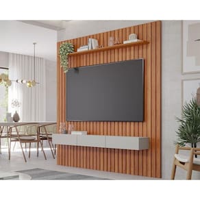 Painel Home p/ TV até 65 Pol Maragogi Ripado c/ 1 Porta e 2 Gavetas 185x220cm Cinamomo/Off White - Permóbili