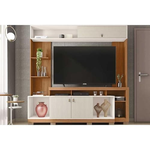 Home P/ Tv Até 65 Pol Sinfonia C/ 3 Portas E 7 Nichos 200x203cm Freijo/off White Mr - Caemmun