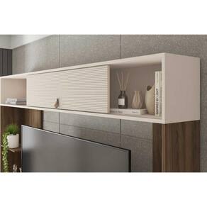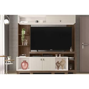 Home p/ TV até 65 Pol Sinfonia c/ 3 Portas e 7 Nichos 200x203cm Nogueira/Off White Mr - Caemmun