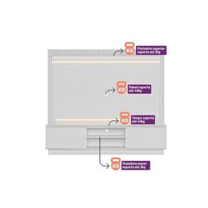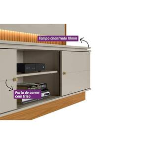 Tipo de Porta - Portas de Correr Quantidade de Portas - 2 Portas de Correr Tipo de Iluminação - Iluminação Fita LED Tipo de Puxador - Alumínio Quantidade de Prateleiras - 2 Prateleiras Quantidade de nichos - 2 Nichos Ideal para TVs até (Polegadas) - 75 Tipo dos Pés - Possui Rodapé