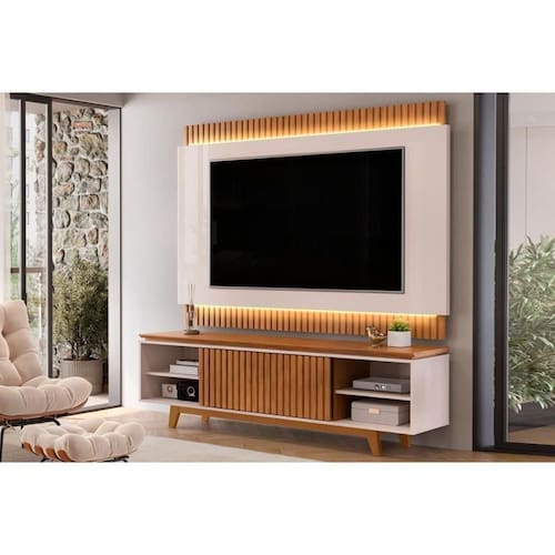 Home P/ Tv Até 75 Polegadas Loren Ripada C/ Nichos 200x194cm Freijó/off White - Dj Móveis