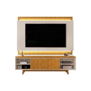 Painel Home p/ TV até 75 Polegadas Loren Ripado c/ Led 200x136cm Freijó/Off White - DJ Móveis